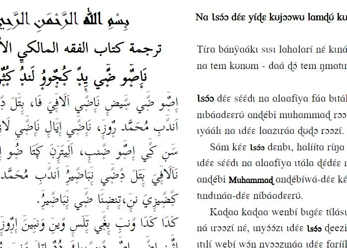 La traduction est faite en Tem -Ajami et en Tem avec les caractères Romains, voici l'exemple "bigraphique" à votre droite.
